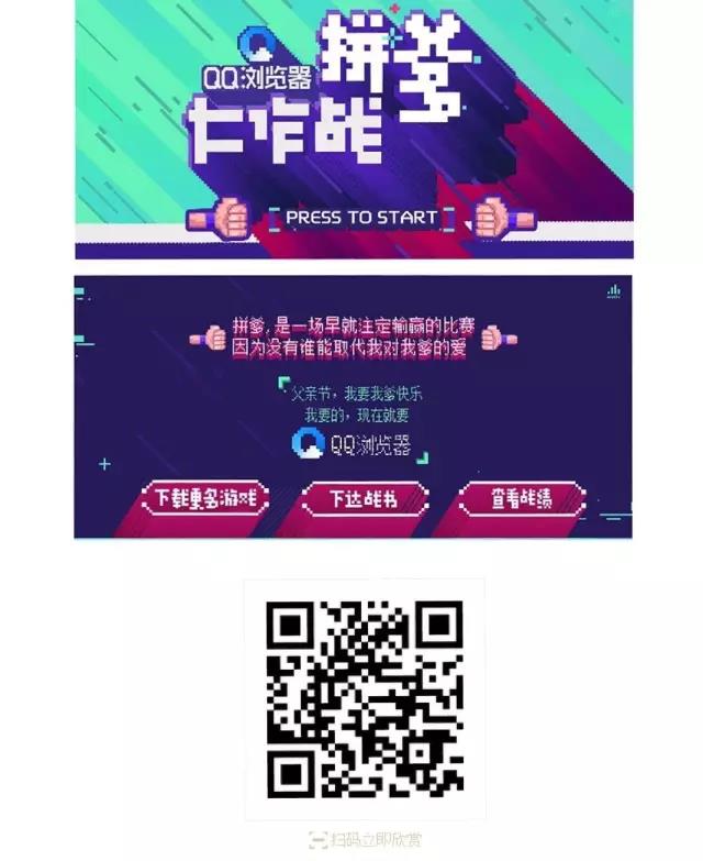 创意亮点:腾讯为QQ浏览器策划的一款恶搞型H5小游戏,通过你对你爹的脾气秉性、颜值风格、送礼、看书和听歌这几项的了解,完善你爹的基本资料,综合你的各项选择的统计分析,最终赋予你爹的相应的属性值。父亲节,恶搞一回父亲,一起来拼爹吧。