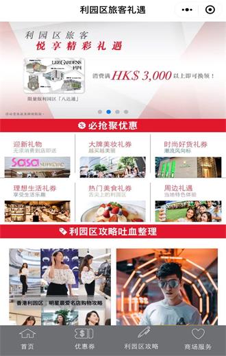 这是一款商场优惠服务小程序,主要是为希慎利园商场的顾客提供智能、便捷、轻量的服务。至潮网红推介游玩攻略以及商户派发的精选礼券,为利园商场打通营销破局新路径。